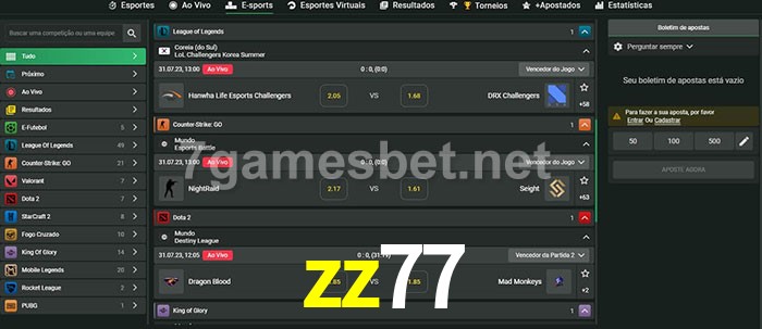 O zz77 oferece uma grande seleção de opções de apostas em e-sports com probabilidades competitivas